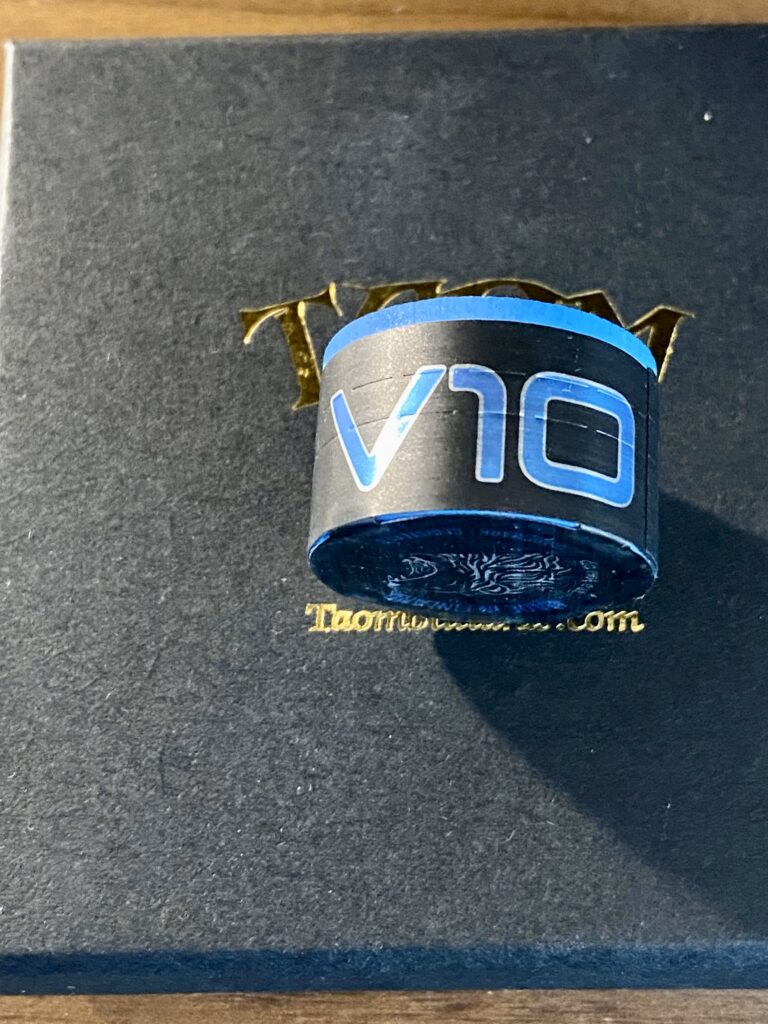 Our promotion of Taom V10 offline has always been vigorous. We here at SnookerZone think it’s great chalk so we’re giving away two V10 blues.