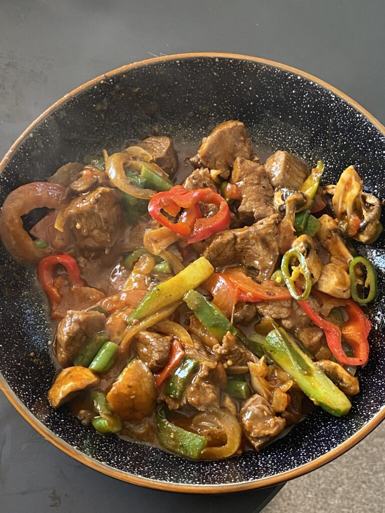 What started as a simple beef stir-fry in the wok turned into something completely different—a rich, spicy, comforting dish that brought together three styles of cooking in one pan:
